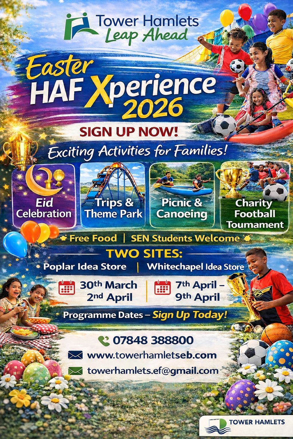 Please note that Tower Hamlets Council will soon release the official HAF booking link, and parents will need to apply through the council system directly once it goes live. The council has not yet published the link on their website.